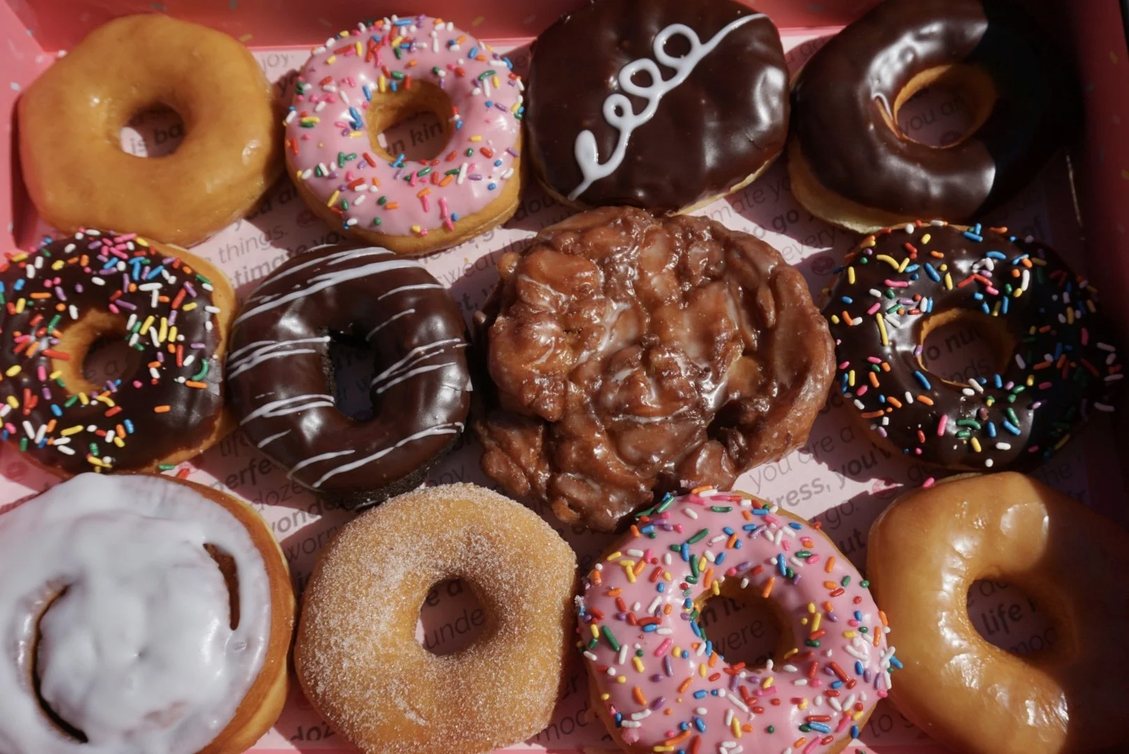 Our donuts are made in a facility that uses wheat, milk, eggs, soy, and nuts. If you have allergies, we recommend checking with your doctor before indulging — and maybe gifting your dozen to a friend who can enjoy it safely.